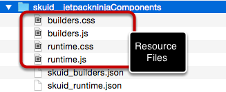 • Resource files contain the Javascript, CSS, and images that are use to define and construct the components in the pack. While component packs typically contain resource files within the archive, you may also reference resource files within a separate static resource through manifest files.
