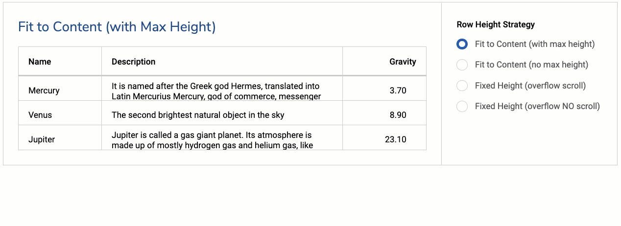 Table styling: Previously, v2 Table components didn’t let you control text wrapping or manage “overflow” content , which meant tables could get, well, gnarly. But new Boston properties give you control over Table row height and let you manage what happens when content overflows an individual cell.