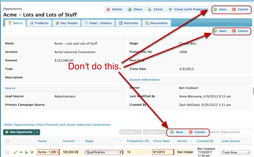 This tutorial shows you how to consolidate all your Save/Cancel buttons into one.