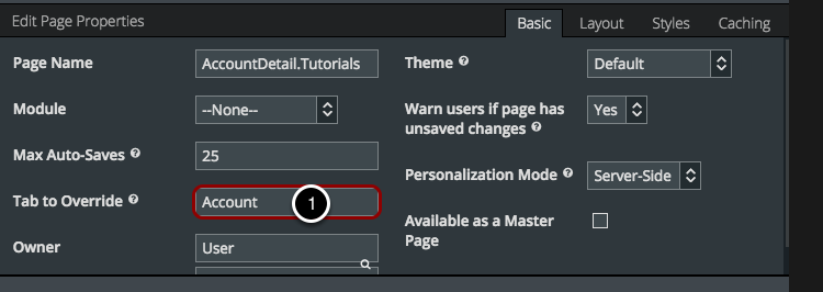 - Select the desired Account from the list. This Account’s ID field will be used to populate the ID URL Parameter when previewing our Account page.