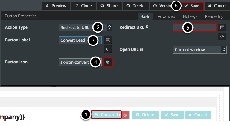 3. Label the button appropriately (e.g. “Convert” or “Convert Lead”).