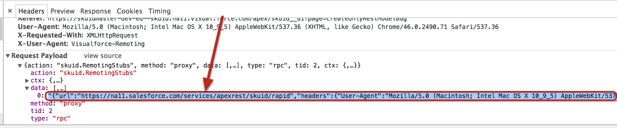 Step 3: Click on apexremote > Headers > Request Payload > data¶