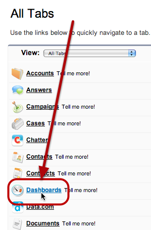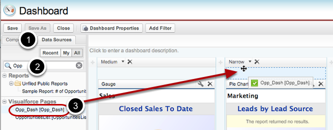Step 10: In the Data Sources tab, drag and drop your new Visualforce page into the dashboard.¶