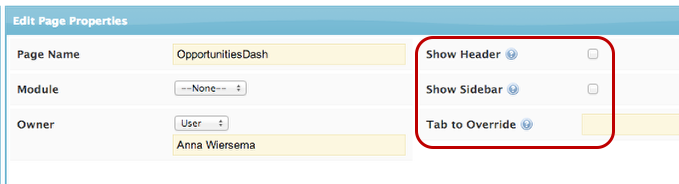 - Since page will appear in a dashboard, you can also clear “Tab to Override”