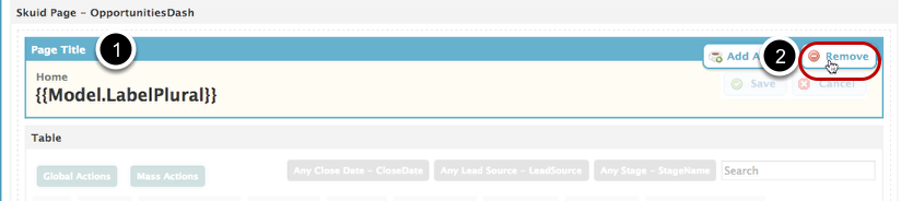 Our Opportunities Tab page contains a Page Title and a Table component. We’ll remove the Page Title component.
