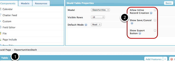 Although it is possible to create, edit, save, and export records from the dashboard using Skuid, it’s better to use your dashboard components solely for displaying information.