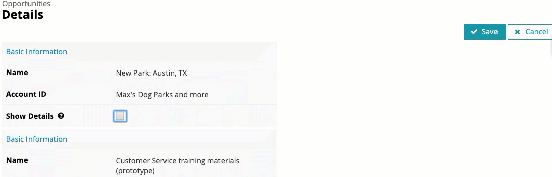 This use case creates a ShowDetails checkbox field and connects it to conditional rendering so that when the box is checked, it displays more data about the record.