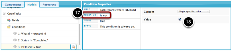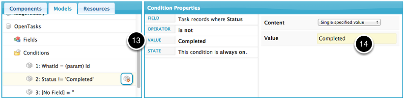 - Step 6: Add Conditions that will only include Open Tasks in this Model.