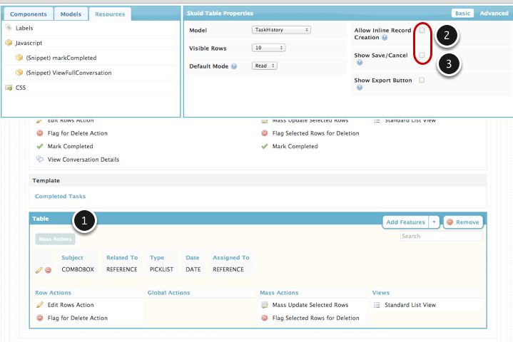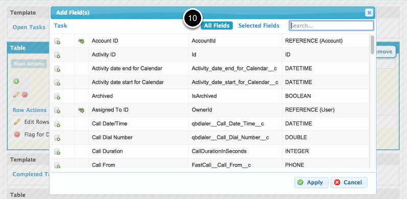 Still in the Open Tasks Table, create a mass Mark Completed action.¶