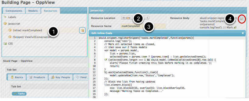 - Enter the name of the markCompleted snippet: tasks.markCompleted (This is the registered name of the snippet in the code from Step 11).