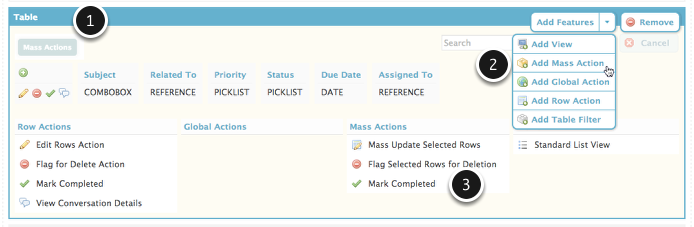 - Still in the Open Tasks Table, create a mass Mark Completed action.