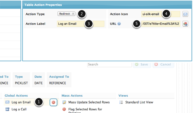 Click on the second global action and make it a “Log a Call” redirect action.¶