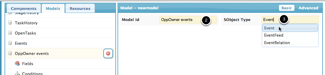 For the URL, enter the following, substituting the name of the primary model on this page for OpportunityData: