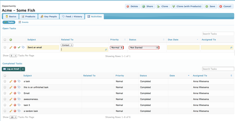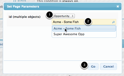The parent page we’re using for this Activities Tab is the Opportunity Detail page, so we have to choose an Opportunity to view this page for.