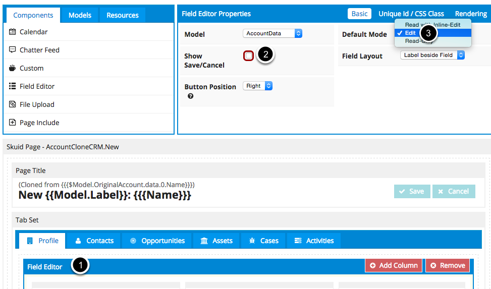 The first thing to know is that any Skuid detail page, such as an Account detail page, is a custom clone page waiting to happen — the fastest way to create a custom clone page is to just clone an existing detail page, such as an “AccountDetail” page you may have already created, and then tweak it to remove components that are not needed during the clone process, such as system information fields.