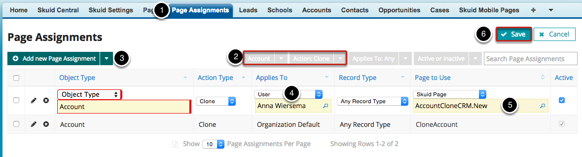 1. Goes to a page assignment that then directs users to the appropriate clone page. (Replace “Account” with your own object type.)