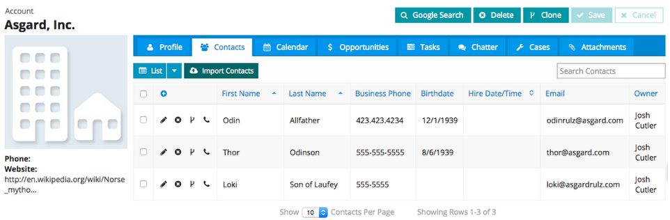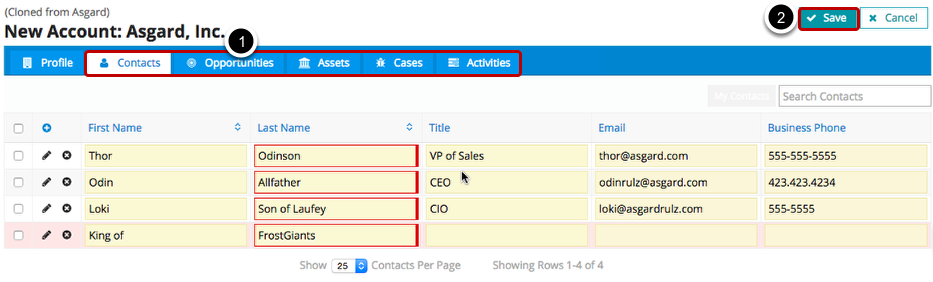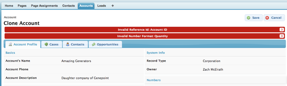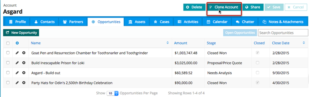 Notice that all of its related information, including related Contacts/Cases/Opportunities, were cloned as well, along with all the changes you made during the clone process!