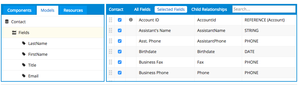 4. All of the fields included in this model will be cloned (even if they don’t appear on the UI). Remove any fields you don’t want to be cloned.