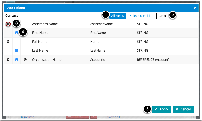 1. Click All Fields to view a list of all the fields in the object (not just the ones you’ve selected).