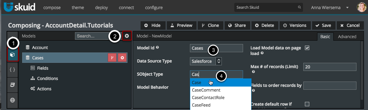- Make sure that the correct Model is selected. In this example, we want the Cases Model selected.