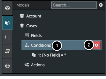 For this example we’re going to choose the Cases object, but you can choose any object that’s related to the main object on your page. For objects with many to many relationships, choose the junction object (e.g. AccountCaseAssociation__c). Check out the Opportunity Products tutorial for more information on this. (Note: You can also use include data from unrelated objects on the same page. Follow these same steps, but don’t add the condition in Step 4.)