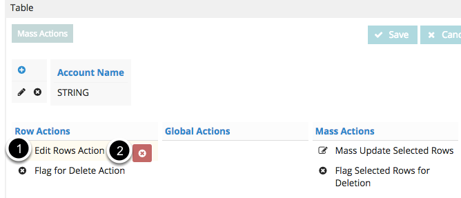 By default, users will be able to edit and delete records in this table (if they have these permissions). To remove one or both of these actions, click on an Action and then click on the red delete icon to remove it.