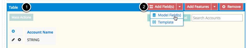 2. A default title and subtitle template will be displayed. You can delete them and add in your own. The template{{Model.labelPlural}} will display the plural name of our object, in this case Accounts.