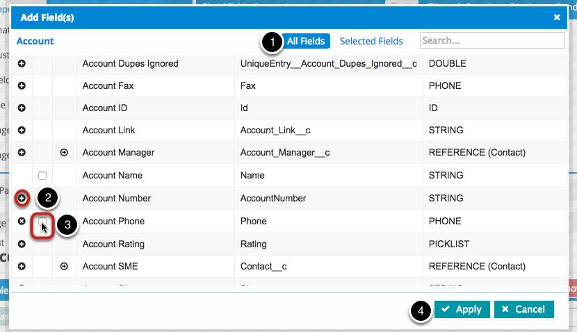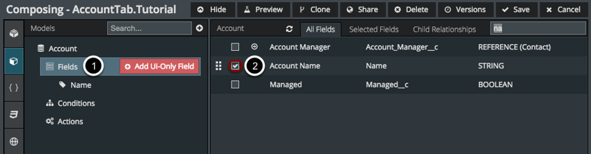 2. Check which Account fields you want to use for this page. For this example, we’re just going to grab is the Account Name field, but you can add as many as you like.
