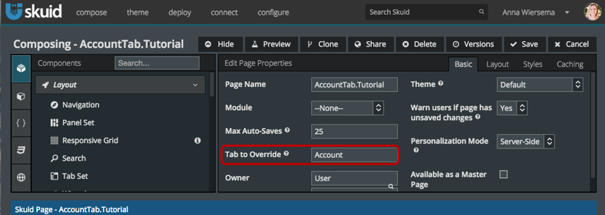 Step 2: In Page Properties, enter the appropriate object as “Tab to Override”