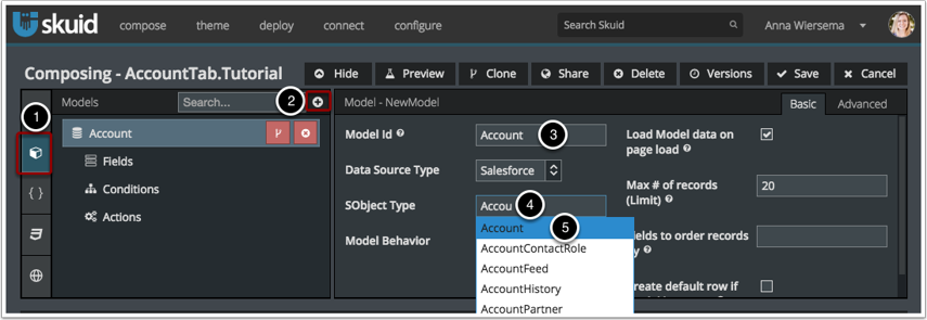 This tutorial shows how to create a list page from scratch in Skuid. In this example, we’ll be building a Salesforce Accounts Tab page, but you can use any object, from any data source (standard or custom). Once you understand how models, conditions, and components work, you can use page templates to build pages more quickly.