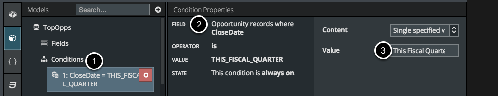 Now this model will only bring in Opportunity records whose Close Date is in this fiscal quarter.