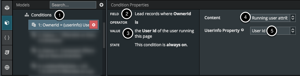 - conditions to only show records owned by the user running the page: Step 7D