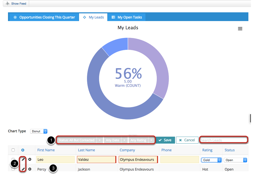 - You can edit Leads right in this table! (And the chart will reflect your changes, even before you save!)